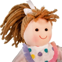 Mekano platneno tijelo, izvezeni oči i nježna vunena kosica pružaju sigurnost i za najmlađu djecu. Idealna kao prva mazna lutka.