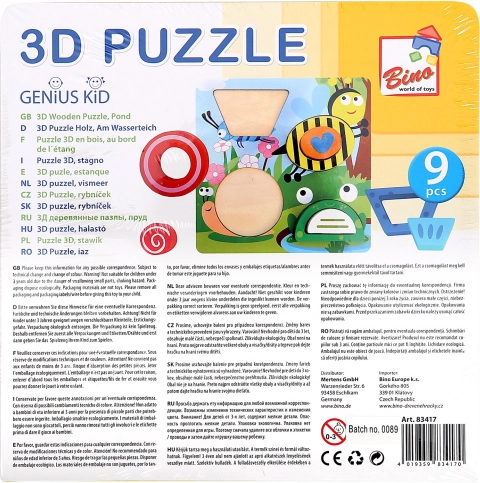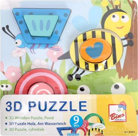 Otkrijte zabavne drvene 3D puzzle s motivom ribnjaka brenda Bino koje potiču dječju maštu i vještine. Zahvaljujući čvrstoj podlozi i 8 šarenih dijelova djeca uvježbavaju prepoznavanje oblika, finu motoriku, logičko razmišljanje i koncentraciju. Sigurna izvedba od masivnog drva i debele šperploče s neškodljivim bojama i lakovima osigurava dug vijek trajanja i ugodnu upotrebu.