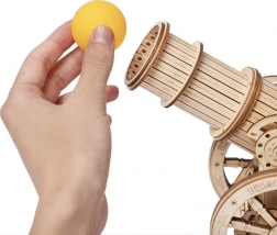 Model nudi ručno napinjani mehanizam ispaljivanja s okidačem i mogućnošću odabira kuta ispaljivanja. Cijev je prilagođena ispaljivanju standardnih ping-pong loptica, pa ćete nakon sastavljanja uživati ne samo u lijepom modelu, već i u dinamičnoj zabavi. Zahvaljujući velikim kotačima top lako premjestite i prilagodite “bojište” prema potrebi.