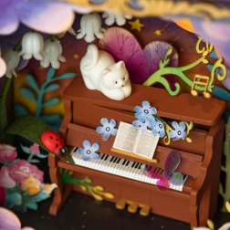 Ova očaravajuća minijaturna diorama omogućuje vam uronjenje u svijet fantazije. Unutar ormarića nalazi se toplo osvjetljenje koje stvara magičnu dubinu scene. Praktična ladica u donjem dijelu ormarića omogućuje pohranu sitnih predmeta. Sklapanje uključuje rad s šperpločama i kartonskim dijelovima koje ćete jednostavno pripremiti. Električni dijelovi su već unaprijed sastavljeni, što olakšava instalaciju. Dovoljne su vam samo škare, jer su ostali alati dio paketa.