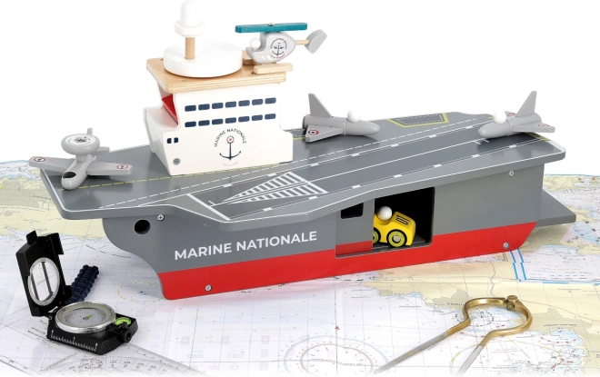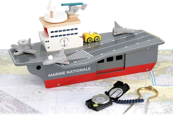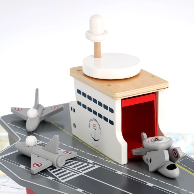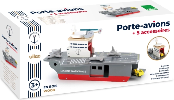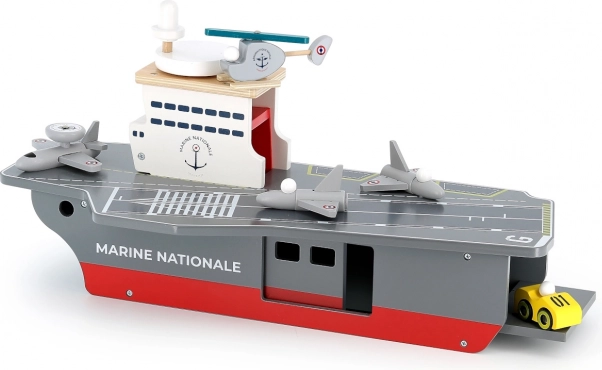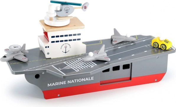 Ovaj precizno izrađen drveni nosač zrakoplova vjerno oponaša prave nosače, uključujući oznake Marine Nationale. Izrađen je od izdržljive, a ipak lagane šperploče, pa je stabilan i lak za rukovanje i mlađoj djeci. Realistični oslikani detalji i promišljeni elementi potiču maštu i donose autentičan pomorski doživljaj.