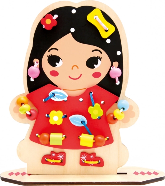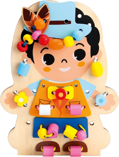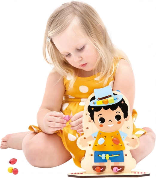 Otkrijte kreativnu drvenu igru nizanjem koja će djecu zabaviti satima i istovremeno razvijati njihove vještine. Obostrano tiskana ploča s likom i bogat set dodataka potiču finu motoriku, koordinaciju ruka–oko i kreativnost. Zahvaljujući 60 dijelova djeca vježbaju strpljenje, logičko razmišljanje i uče rješavanje problema kroz igru.
