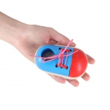 Set sadrži dvije cipelice i par vezica, pa dijete može uvježbavati različite načine vezanja. Zahvaljujući kompaktnih dimenzijama lako se sprema i izvrsno je i za putovanja.