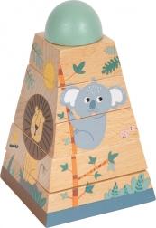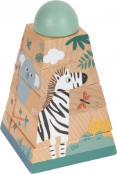 Ova igračka od izdržljivog drva pruža djeci mogućnost poboljšati svoje motoričke vještine i koordinaciju oko-ruka. Sastoji se od šest dijelova koji pri ispravnom slaganju otkrivaju vesele životinje koje nastanjuju safari. Toranj je izvrstan kao edukativno pomagalo, a ujedno estetski nadopunjuje svaku dječju sobu svojim živopisnim bojama.