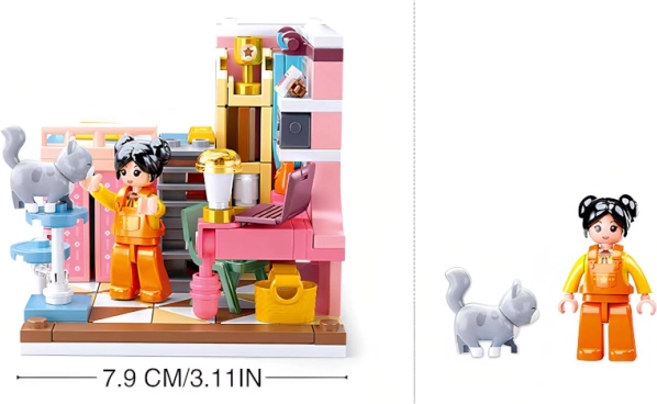 Sastavite detaljnu mini spavaću sobu iz popularne serije Sluban Girls Dream. Od 210 dijelova složit ćete originalnu scenu s dodacima i 2 figuricama s rotirajućim i njihajućim dijelovima. Zahvaljujući kompatibilnosti s LEGO, Cobi i Mega Bloks lako ćete proširiti svijet svoje konstrukcijske igre.