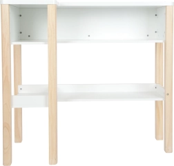 Stilizirana dječja drvena prodajna kućica u nordijskom dizajnu za kreativnu igru trgovine. Nudi modularnu konstrukciju, odvojivu platnenu tendu, ploču za pisanje i sigurne zaobljene rubove. Sjajno se uklapa u interijer zahvaljujući kombinaciji bijele i prirodnog drva te potiče komunikacijske i socijalne vještine djece.