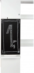 Ploča sa strane kućice omogućuje pisanje cijena i poruka; polica drži kredu uvijek pri ruci.