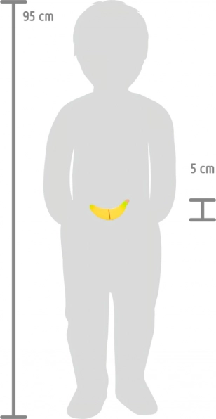Ovaj kvalitetan set od čvrstog drva donosi sve što mali kuhari trebaju: dasku s mogućnošću pisanja kredom, siguran drveni nož i bogat izbor namirnica – rajčica, krastavac, mrkva, jabuka, banana, sir, salama, maslac i pecivo. Pojedini dijelovi drže se zajedno pomoću čička, pa ih djeca mogu iznova i iznova “rezati” i sastavljati.