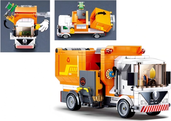 Dio seta je radna figurica, kante za otpad i promišljeni detalji vozila, uključujući mehanizam za utovar za „odvoz otpada”. Zahvaljujući kompatibilnosti s LEGO, Cobi, Mega Bloks i drugim markama, lako možete proširiti svoj grad i smišljati vlastite priče.