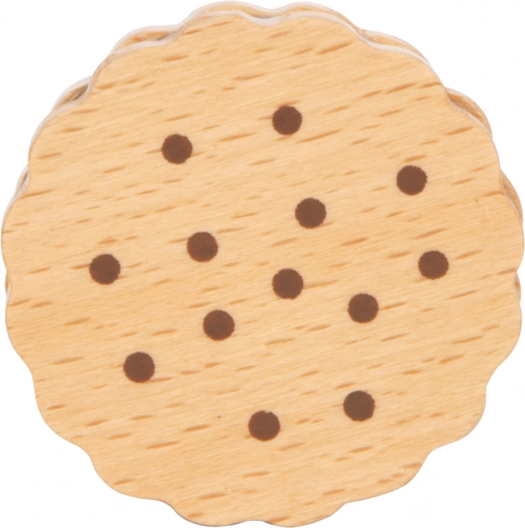 Ovih pet čvrstih drvenih keksa idealan su dodatak dječjim igrama. Ne samo da podržavaju kreativnost i maštovitu igru, nego također pomažu razvijati motoričke vještine zahvaljujući svojoj prirodnoj i realistično strukturi. Svaki keks ima čokoladno punjenje i u stanju je zadržati dječju pažnju svojim detaljima.