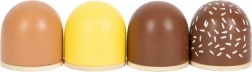 Četiri varijante pralina - bijela čokolada, tamna čokolada, tamna čokolada s posipom i mliječna čokolada - ugodno će osvježiti dječje igre. Njihov prirodni izgled i eko kartonsko pakiranje dizajnirani su kako bi oduševili i inspirirali djecu za maštovitu igru.