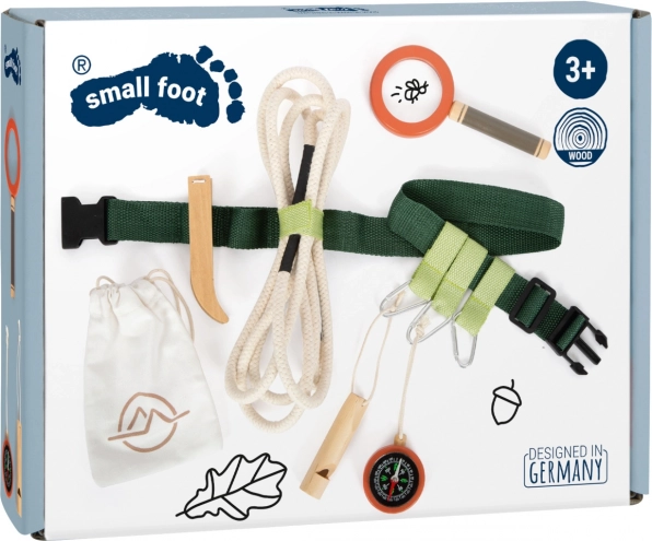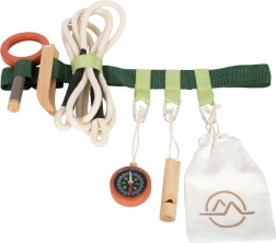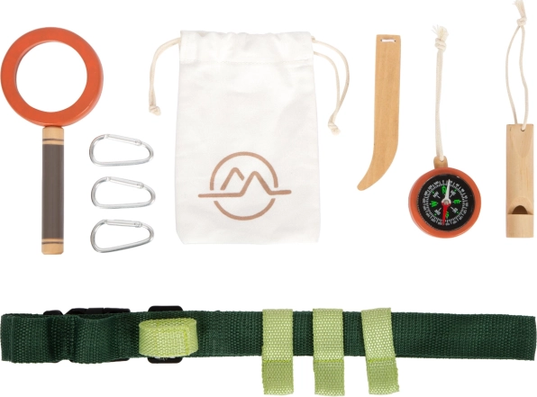 Krenite u nezaboravne avanture s pojasom punim opreme. Djecu će oduševiti izdržljiv pojas koji uključuje drvenu zviždaljku, lupu, pincetu, kompas, uže i tekstilnu vrećicu. Sve se lako pričvršćuje pomoću omčica i karabinera.