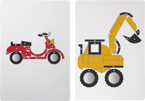 S ovom klasičnom igrom zabijanja u modernim bojama djeca mogu stvarati slike prijevoznih sredstava i građevinskih strojeva prema šest slikovnih predložaka ili prema vlastitoj mašti. Glavne značajke: