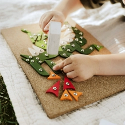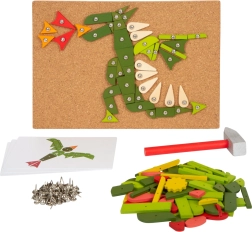 Kreativna igra zabijanja za djecu koja razvija njihovu finu motoriku i kreativnost. Set sadrži plutenu podlogu, drveni čekić i razne šarene drvene dijelove.