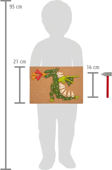 Ova igračka za zabijanje idealna je za male istraživače s maštom. Razvija motoričke vještine i podržava kreativnost kod djece. Set sadrži dijelove različitih oblika i boja koje je lako zabijati u plutenu podlogu.
