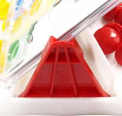 Ploča čini poklopac kofera, pa svi dijelovi ostaju uredno posloženi, a igračku je lako nositi bilo kamo.