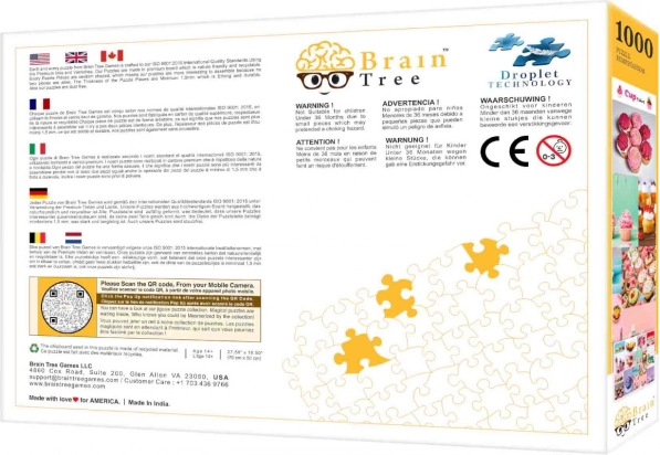 Uronite u svijet slatkih poslastica s puzzleom Brain Tree Kolačići koji nudi 1000 nasumično izrezanih dijelova. Zahvaljujući mat završnoj obradi svaki će koloristički detalj slike doći do izražaja u svim svjetlosnim uvjetima. Svako pakiranje sadrži i plakat s odgovarajućom slikom te praktične kartonske pregrade za razvrstavanje dijelova.