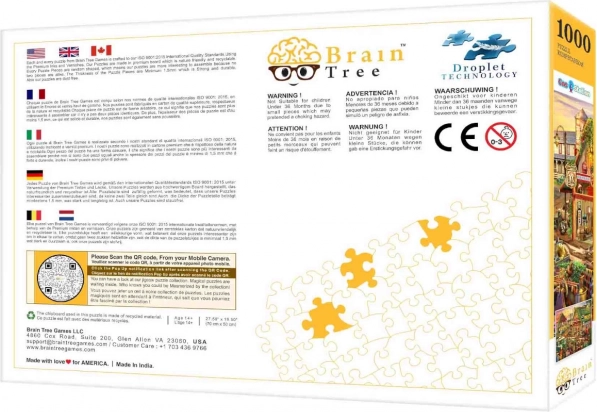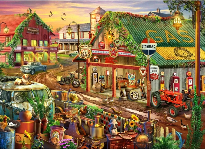 Stilske puzzle Brain Tree s motivom seoske benzinske postaje nude 1000 jedinstveno oblikovanih dijelova, mat završnu obradu s vrhunskim tiskom i bogatu dodatnu opremu za ugodno slaganje. Uživajte u raznolikim oblicima dijelova, plakatu u kvaliteti puzzli, praktičnim pretincima za sortiranje, postolju za poklopac i izdržljivoj vrećici na zatvaranje za zaštitu dijelova.