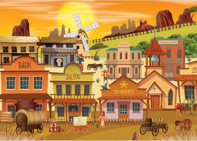 Uronite u šaroliki svijet Divljeg zapada s prizorom punim detalja – saloon, banka i ured šerifa uvući će vas u atmosferu zalaska sunca. Puzzle BRAIN TREE ističu se vrhunskim tiskom i mat površinom zahvaljujući kojoj su multireljefni detalji savršeno čitljivi u svim svjetlosnim uvjetima.