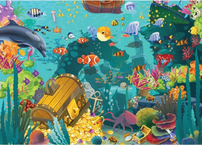 Motiv „Underwater Treasure“ vodi vas do potopljene škrinje s blagom usred šarenog koraljnog grebena. Zahvaljujući vrhunskom tisku i mat površini, čak i najfiniji detalji ostaju jasni bez ometajućih odsjaja. Nasumično rezani dijelovi donose raznolike oblike i zabavan izazov – svaki je dio jedinstven.