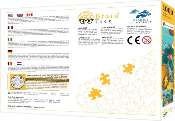 U pakiranju ćete pronaći sve za ugodno sastavljanje: kvalitetan plakat, sklopive sortirne pregrade, stalak za poklopac kutije, a kod varijante od 1000 dijelova i veliku vrećicu s patentnim zatvaračem za sigurno spremanje. Idealan dar za ljubitelje puzzli od 14 godina naviše.