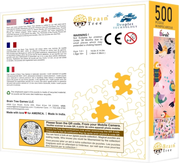 Slagalica Puzzle Brain Tree Bajkovite Ptice oduševit će sve zaljubljenike u puzzle svojom kvalitetom i originalnošću. Dijelovi su ugodni na dodir i odlikuju se visokom otpornošću na trošenje, što jamči dugotrajnu igru. Za razliku od tradicionalnih puzzli, gdje su dijelovi rezani u mrežasti uzorak, ovdje ćete pronaći dijelove raznolikih oblika koji donose novu, pustolovnu dimenziju slagalicama.