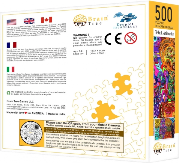 Uživajte u jedinstvenom iskustvu slaganja s puzzlama Brain Tree. Svaki od 500 dijelova je jedinstven i izrezan u nasumične oblike, što donosi sjajnu zabavu i dozu avanture u svako slaganje. Zahvaljujući mat završnoj obradi površine detaljne slike uvijek su jasno vidljive.