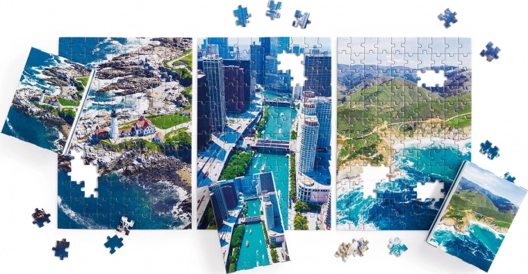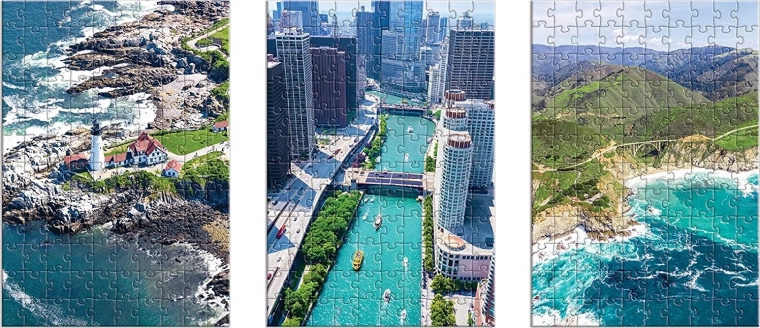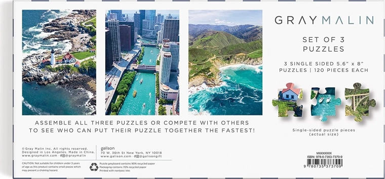 Ekskluzivni set od 3 puzzle Galison sa zračnim snimcima SAD-a od Graya Malina. 3×120 dijelova, mat tisak, reciklirani materijali, FSC. Sjajan poklon od 8 godina.
