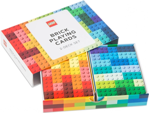 Stilizan set igraćih karata s licencom LEGO donosi 2 odvojena špila (ukupno 108 karata) pogodan za kanastu, poker i druge kartaške igre. Ističe se živim bojama, motivima LEGO kockica i minifigurica te kvalitetnom izradom od recikliranih i održivih materijala s tiskom neškodljivim bojama.
