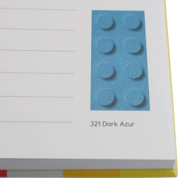 Svaka crtana stranica sadrži ilustraciju elementa u određenoj LEGO nijansi, što uljepšava pisanje i potiče kreativnost.