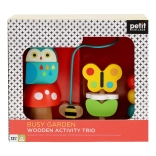Petit Collage motorički labirint Vrt Activity Trio je lijepo izrađena drvena igračka koja nudi tri različite aktivnosti. Djeca mogu uživati u stavljanju, pomicanju i okretanju životinjskih figura i drugih dijelova ove igračke. Njezin jednostavan, ali atraktivan dizajn podržava razvoj kognitivnih sposobnosti i mašte djece.