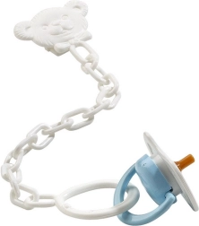 Praktična dudica s lančićem i kopčom lako se pričvrsti na odjeću, pa se ne gubi i bebu brzo umirite.