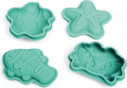 Set sadrži četiri različita silikonska kalupa u obliku raka, ribe, morske zvijezde i kornjače za maksimalnu kreativnost vaše djece.