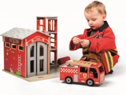 Dječji vatrogasni kostim BIGJIGS TOYS nudi sve što mali vatrogasci trebaju za uzbudljivu spasilačku misiju. Jarko crvena jakna s prugastim rukavima i amblemom, podesiva kaciga (49–55 cm) te dodaci poput drvenog aparata za gašenje, radio-stanice i megafona daju igri realističnu dimenziju.