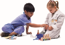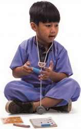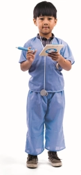 - Majica, hlače, drveni stetoskop, liječničke ploče, toplomjer, džepni sat, injekcijska štrcaljka, flasteri