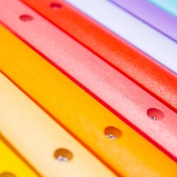Sigurni vijci osiguravaju čvrsto pričvršćivanje tipki, što štiti djecu tijekom igre. Ovaj ksilofon je idealan za razvoj koordinacije i percepcije boja.