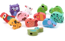 Igračka potiče kreativnost i finu motoriku dok djeca nižu životinjske perle na uzicu.