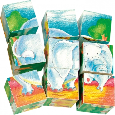Klasične drvene slikovne kocke s motivima divljih životinja razveselit će svakog malog graditelja. Set sadrži 9 masivnih drvenih kocaka od kojih možete složiti 6 različitih slika. Pohranjeno u praktičnoj drvenoj kutijici s poklopcem – idealno za putovanja i uredno spremanje.
