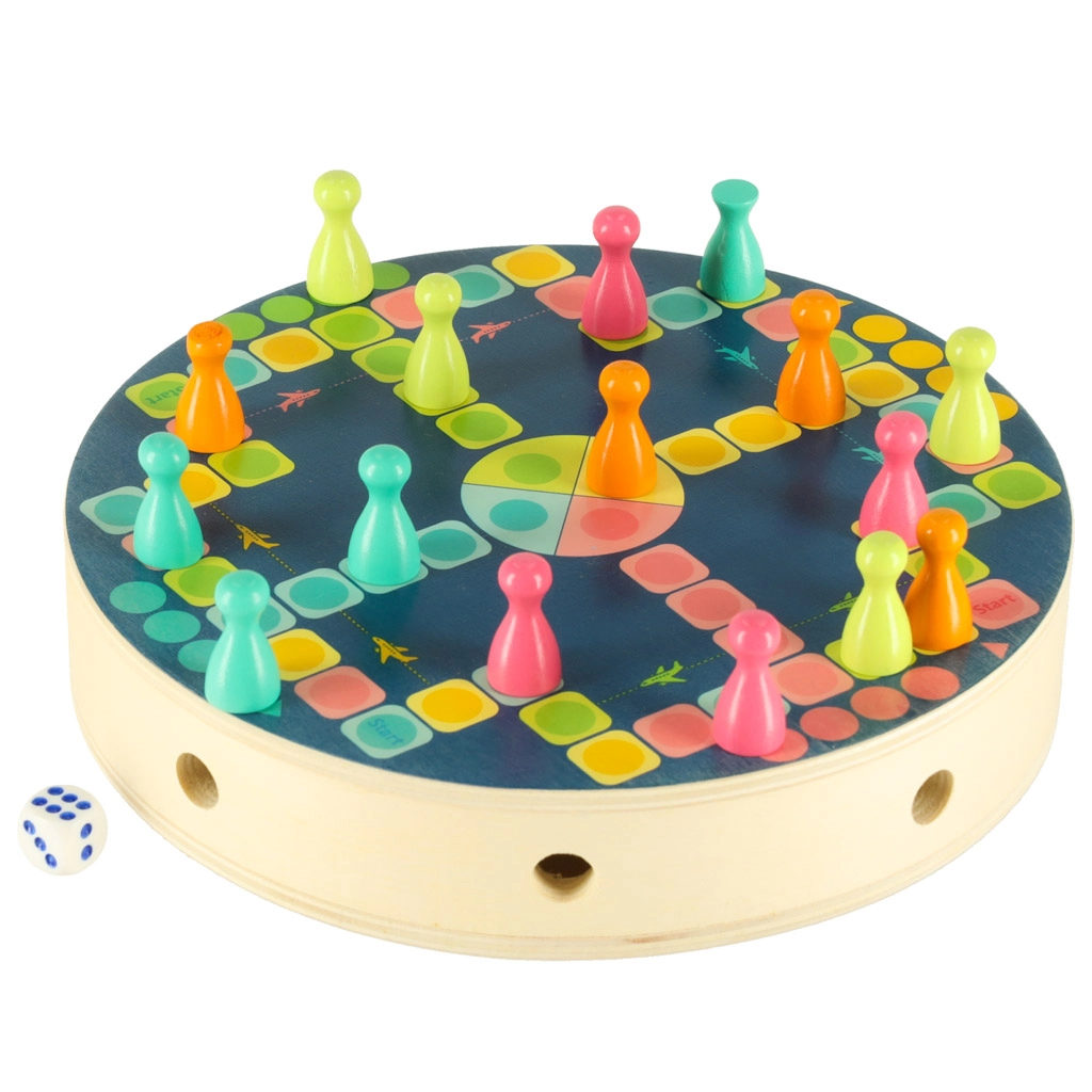 Dio seta je i jednostavna društvena igra s pješacima i kockom za vježbu brojanja i prvih pravila igre. Svi dijelovi imaju glatke rubove i izrađeni su od kvalitetnog drva s postojanim bojama, pa su ugodni za držanje i sigurni za svakodnevnu igru.