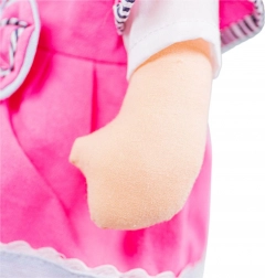 Odvojiva haljinica s mašnicama i prugastim detaljima potiče razvoj vještina i omogućuje djeci brigu o svojoj lutki.
