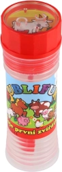 Boca za mjehuriće Moje prve životinjice donosi puno radosti pri svakom puhanju. Zahvaljujući volumenu od 50 ml dugo traje i sjajan je pratitelj na igralištu, u vrtu i na dječjim proslavama. Integrirana mini igra u poklopcu zabavit će djecu i tijekom pauza od puhanja.