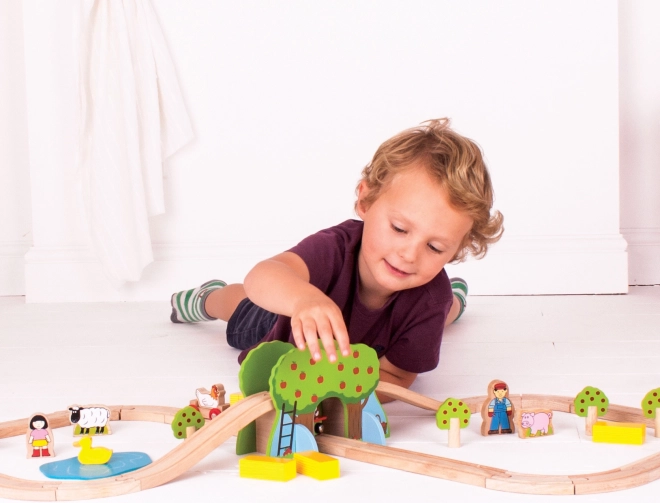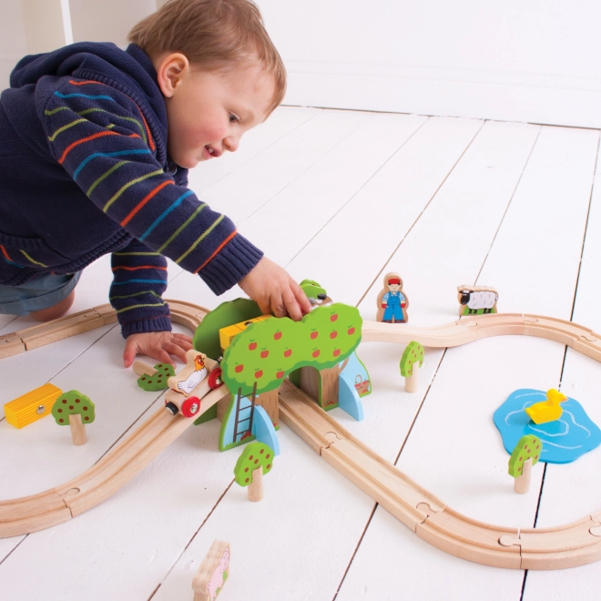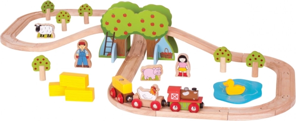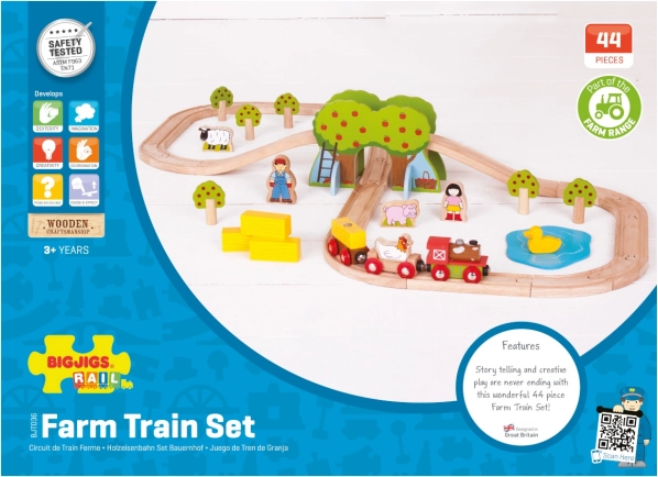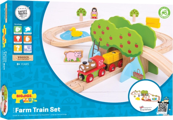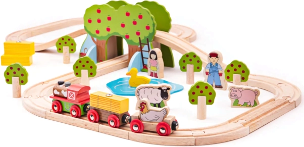 Ovaj prekrasni drveni set željeznice s farmom od Bigjigs Rail sadrži 45 dijelova i uključuje figure ljudi, životinja i stabala. Podržava maštu i koordinaciju, te je izrađen od odgovorno dobivenih prirodnih materijala.