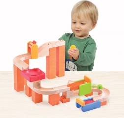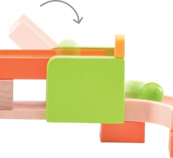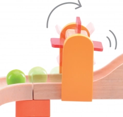 Sastavljajte, isprobavajte i otkrivajte! Staza za kuglice TRIX Vrtuljak i vrtlog donosi pametan sustav spajanja dijelova zahvaljujući kojem je izgrađena staza uvijek čvrsta i stabilna. Osnovni građevni dijelovi izrađeni su od izdržljivog drvoplasta, a same staze pretežno od masivnog drva s glatkom završnom obradom. Atraktivna kombinacija zasićenih boja i prirodnog drva oduševit će i djecu i odrasle.