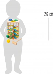 Toranj za udaranje s kuglicama od Small Foot savršena je igračka za razvoj motoričkih sposobnosti djece. Sastoji se od tornja gdje djeca udaraju 3 šarene kugle kroz plastične prstene i promatraju kako kugle padaju dolje niz stepenice i proizvode kliktajući zvuk.