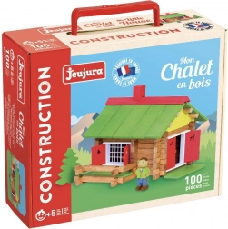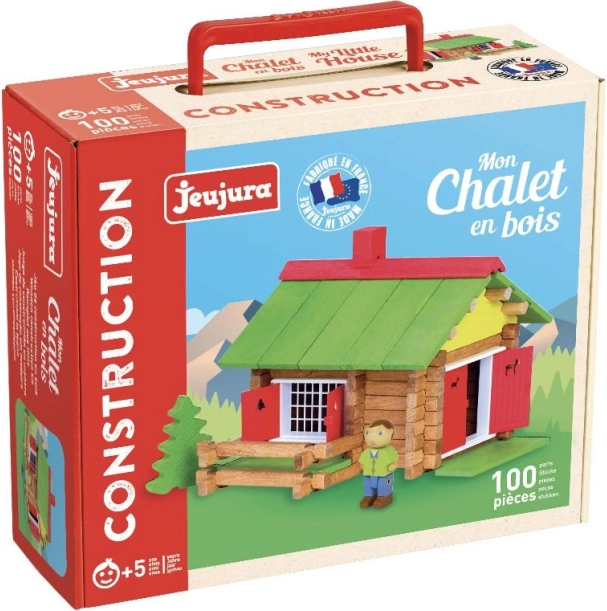 Drvena građevna set inspirirana alpskim brvnarama razveselit će svakog malog graditelja i postat će ukras dječje sobe. Građevne setove Jeujura Constructions odlikuje duga tradicija i ubrajaju se među klasične francuske igračke. Nude serije tematski posvećene brvnarama, kućama i farmama, ali i Divljem zapadu te srednjem vijeku. Mogu se međusobno slobodno kombinirati, a za mnoge od njih dostupni su i dodaci, figurice i vozila. Proizvode se u Francuskoj, od masivnog bukovog i borovog drva francuskog podrijetla. Dijelovi setova obrađeni su isključivo bojama i lakovima na bazi vode. Svaki set je pakiran u praktičan kartonski koferić tiskan biljnim tintama, a dio pakiranja je i lako razumljiv priručnik. Glavne značajke: 100 dijelova od masivnog drva i podloga, praktično pakiranje, proizvedeno u Francuskoj