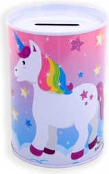 Metalna kasica s motivom jednoroga nije samo praktičan pomagač za štednju, već i lijep dekorativni element dječje sobe. Njezine šarene ilustracije jednoroga, duge i zvijezda razveselit će svako dijete.