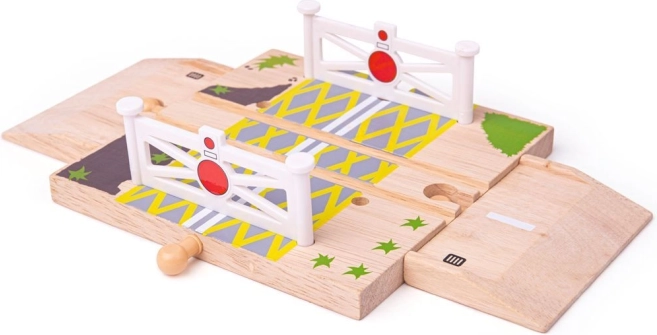 Ovaj fantastični drveni željeznički prijelaz idealan je dodatak za vaše setove igara. Djeca će uživati u postavljanju prijelaza duž gradova i cesta te naučiti kako sigurno prelaziti pruge.