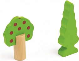 Ova drvena željeznica s ruralnom cestom savršeno je povezana željeznička i automobilska staza koje oponašaju stvarni svijet transporta. Zahvaljujući mostovima i prijelazima vaša će djeca ući u svijet pun zabavnih avantura. Sve je obogaćeno lokalnim dodacima poput farme, zgrada i stabala koja uljepšavaju okolinu.