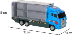 Plavi kamion ne samo da može prevoziti do 14 vozila, nego ga njegovi realistični detalji čine neodoljivom igračkom za djecu. Prozirna vrata i izbacivač dodaju uzbuđenje.