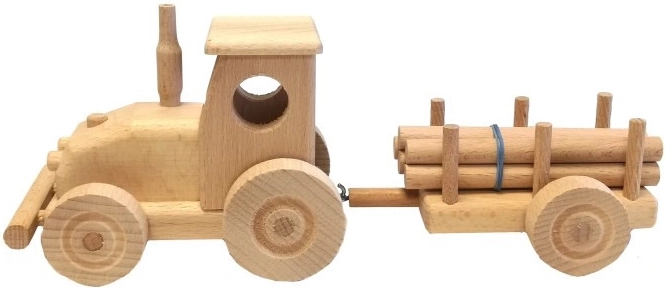 Ovaj drveni traktor s prikolicom idealan je pratitelj za dječju maštovitu igru. Izrađen je od kvalitetnog bukovog drva s prirodnim voštanim finišem.